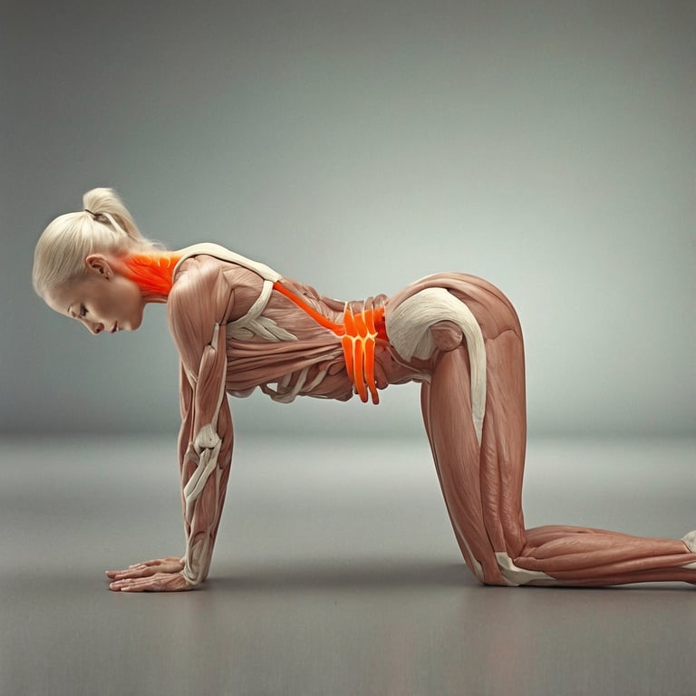 Estimulación de los Órganos Internos: La combinación de movimientos en Gato-Vaca estimula los órganos internos, incluyendo los órganos digestivos y el sistema circulatorio, lo que puede mejorar la digestión y la circulación sanguínea.