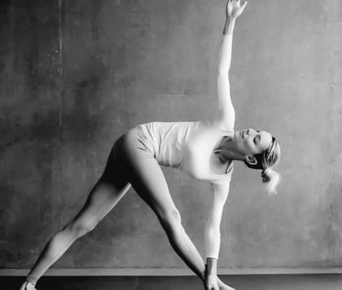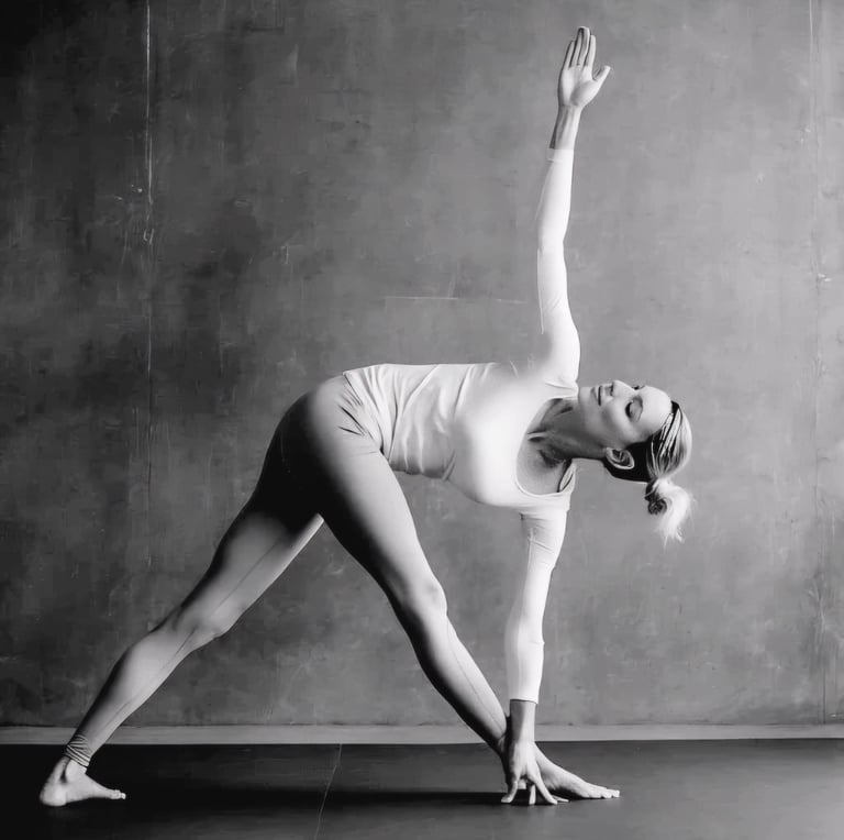 La postura del Triángulo Invertido fortalece y estira las piernas, el core y la espalda, mejorando la estabilidad y el equilibrio. Estira los músculos de los isquiotibiales, las caderas y la columna vertebral, aumentando la flexibilidad y la movilidad. Además, mejora la digestión y la desintoxicación del cuerpo debido a la torsión. Practicar Parivrtta Trikonasana regularmente también puede mejorar la postura, aumentar la capacidad pulmonar y promover una mayor conciencia corporal, contribuyendo a una sensación general de bienestar y equilibrio.