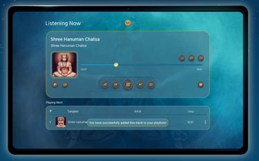 Con Sangeet, podrás escuchar mantras, bhajans y cantos védicos que elevan la mente y el espíritu. La música y los mantras tradicionales ayudan a armonizar el ambiente y a profundizar en la meditación.