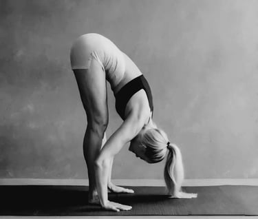 Torso y Caderas: Inclina el torso hacia adelante desde las caderas, manteniendo la columna vertebral alargada. Trata de llevar el pecho hacia los muslos y la frente hacia las piernas.