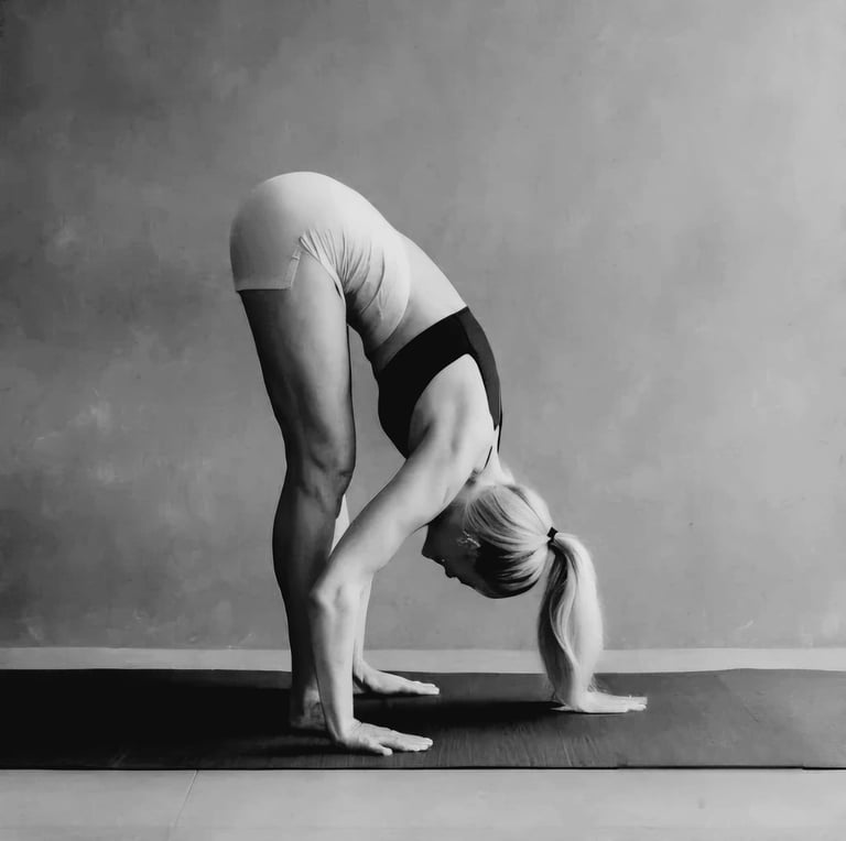 La postura extendida (Uttanasana) estira y fortalece los isquiotibiales, las pantorrillas y la espalda, mejorando la flexibilidad y la movilidad. Relaja los músculos del cuello y los hombros, aliviando la tensión. Además, aumenta la circulación sanguínea en la parte superior del cuerpo, lo que puede mejorar la claridad mental y reducir el estrés. Practicar Uttanasana regularmente también puede ayudar a mejorar la postura y la alineación corporal, promover una mayor conciencia corporal y proporcionar una sensación general de calma y bienestar.